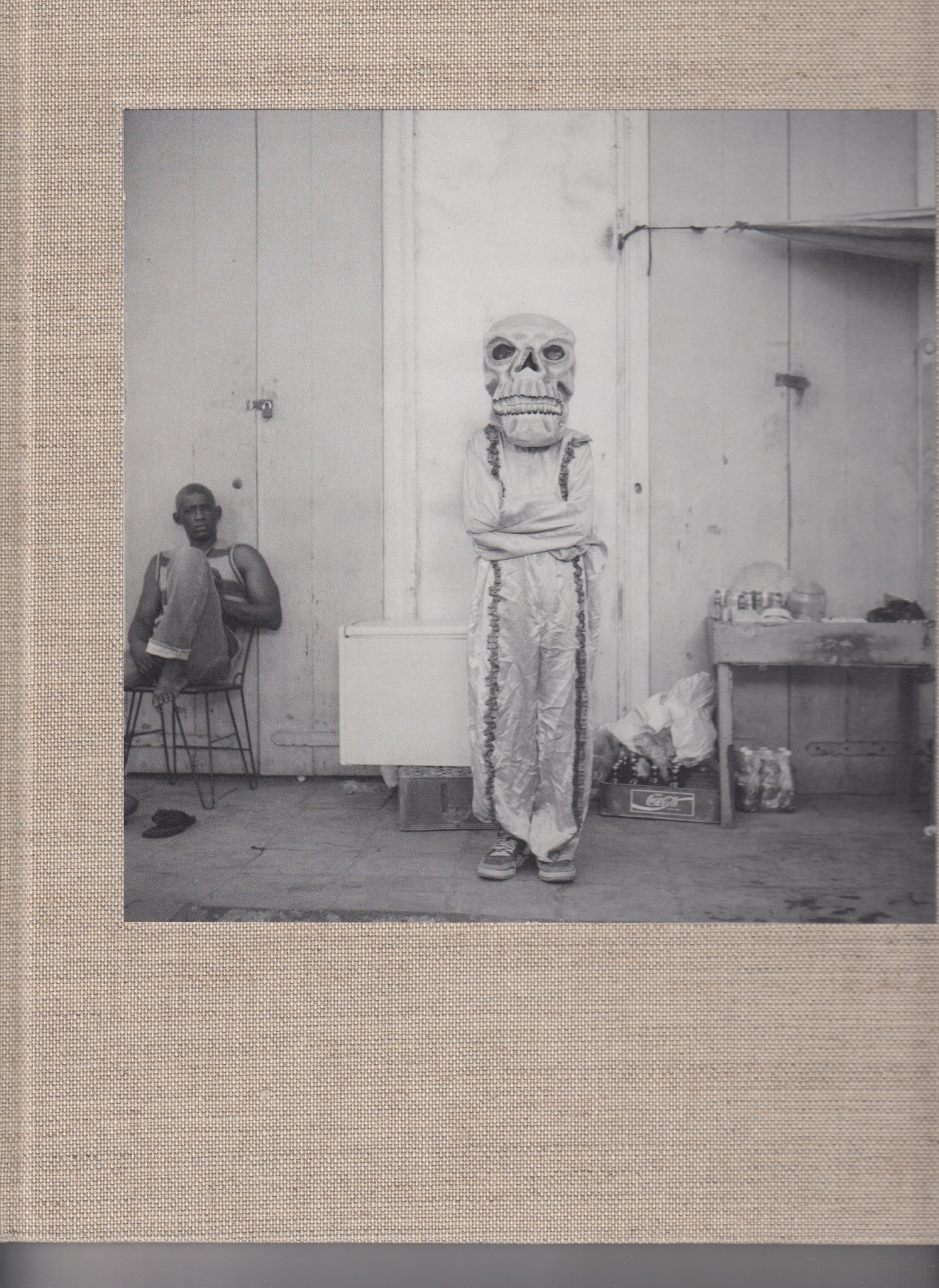 Leah Gordon has been photographing Jacmel Carnival and recording oral histories with its participants since 1995. Her photographs in ‘Kanaval’ are stripped of kinesis and exuberance. She uses a sixty-year-old Rolleicord medium-format twin-lens-reflex camera, and shoots onto black and white negative film. A consensual reciprocity between the photographer and the sitter arises which leaves behind the commotion of the street and enters the more tranquil territory of a portrait studio.