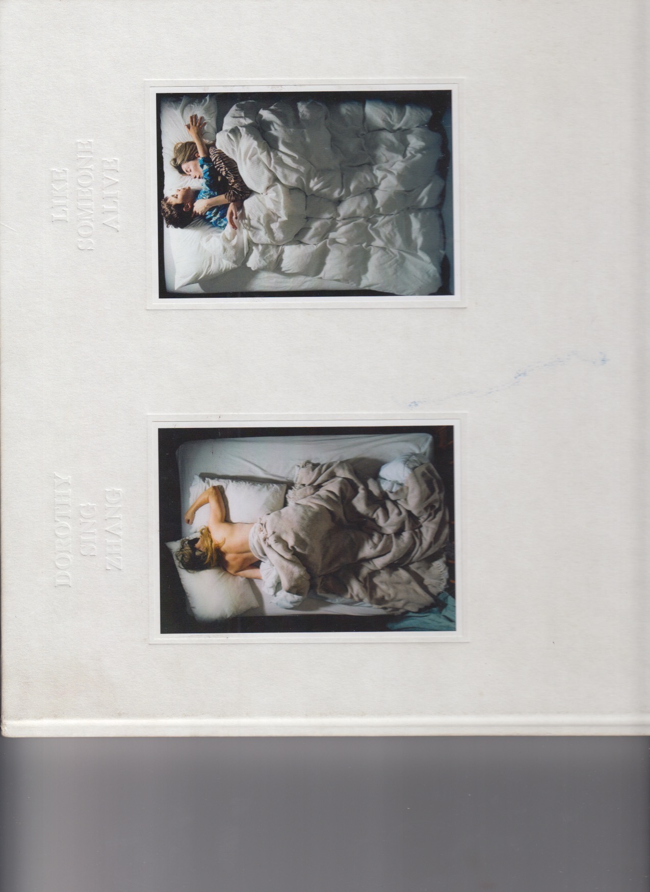 Dorothy Sing Zhang unveils a compelling portrayal of humanity’s vulnerable state during sleep. The scene is set in the bedrooms of others. One is asked to be asleep, a squeeze cable release is placed under the pillow. The chance of one’s unconscious body rolling over and triggering the camera results in an exposure. Like Someone Alive expands these boundaries by withdrawing the traditional relationships between the photographer, the object and the camera.
