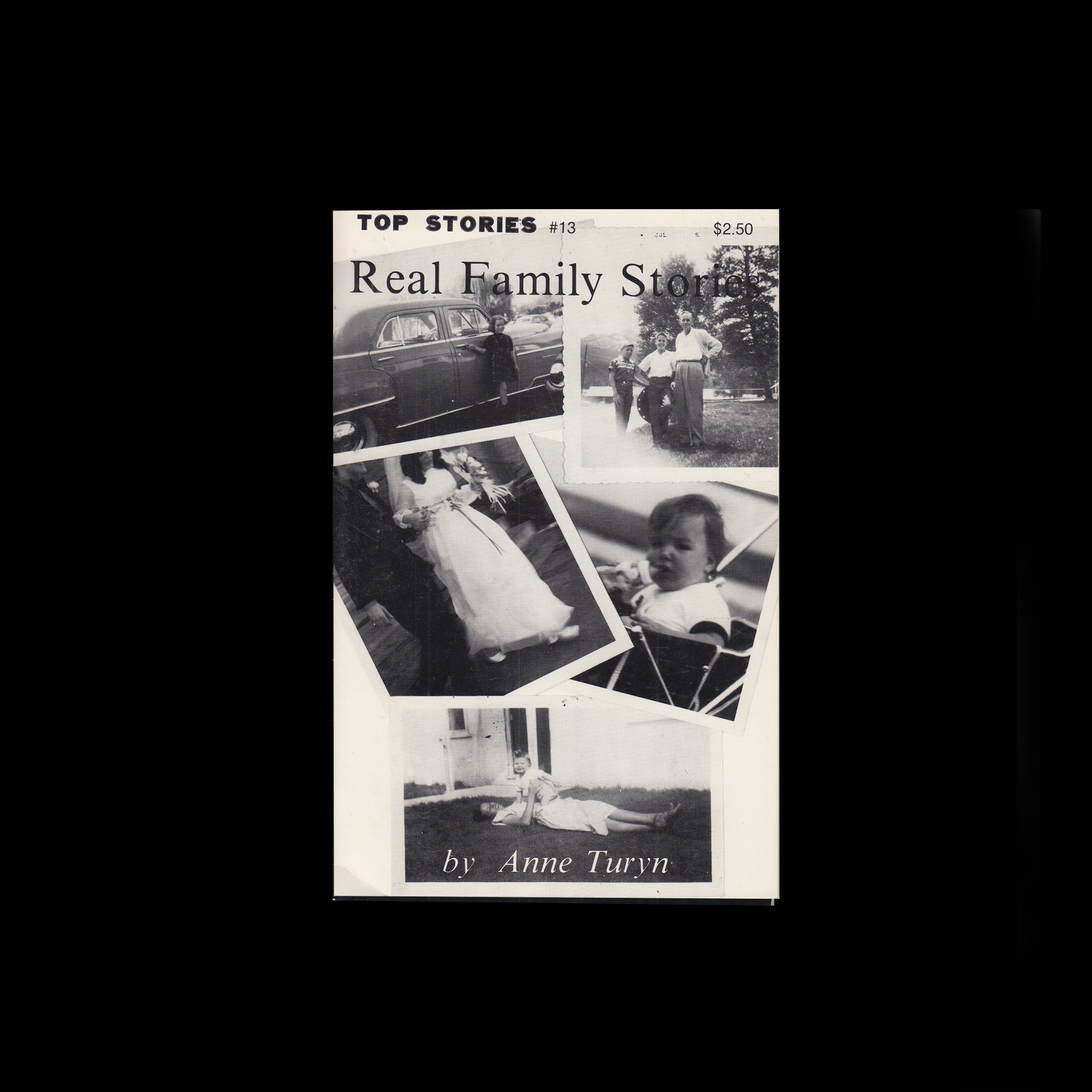 Anne Turyn's entry into the legendary downtown prose periodical 'Top Stories', of which she was the founder and editor. Real Family Stories juxtaposes mundane black and white snapshots- of children, homes, meals, vacations and the like – with a collage of stories that underlines the sheer insanity of family interactions.